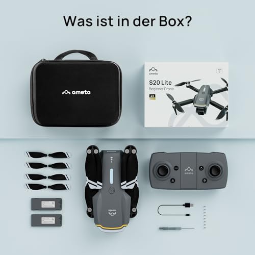 Die Ameta S20 Lite mit Controller, 2 Akkus & Zubehör.