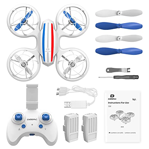 Die DEERC D23 ist eine interessante Mini-Drohne mit umlaufenden Propellerschutz und kleiner Kamera. Sie wird mit gleich zwei Akkus à ca. 7 Minuten Flugzeit ausgeliefert und eignet sich dank einfacher Bedienbarkeit und geringem Gewicht hervorragend als Drohne für Kinder.