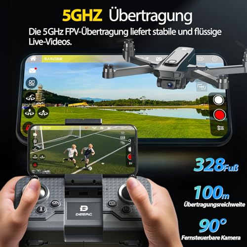 Dazu trägt auch die FPV-Livebild-Übertragung bei, die dank 5-GHz-Technologie bis zu einer Entfernung von ca. 100 Metern funktioniert. Ein Feature, das bei Drohnen unter 100 € äußerst selten ist.
