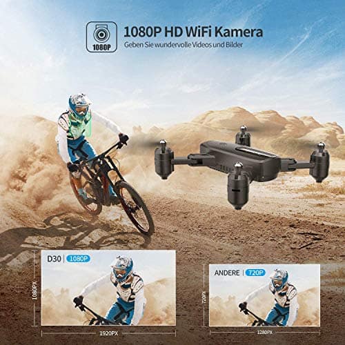 Die DEERC D30 Drohne ist ein faltbarer Quadrocopter mit Full HD-Kamera und FPV-Livebild-Übertragung. Bei der DEERC D30 handelt es sich um eine Einsteiger-Drohne ohne GPS-Modul, die dafür aber mit gleich zwei Akkus daherkommt.