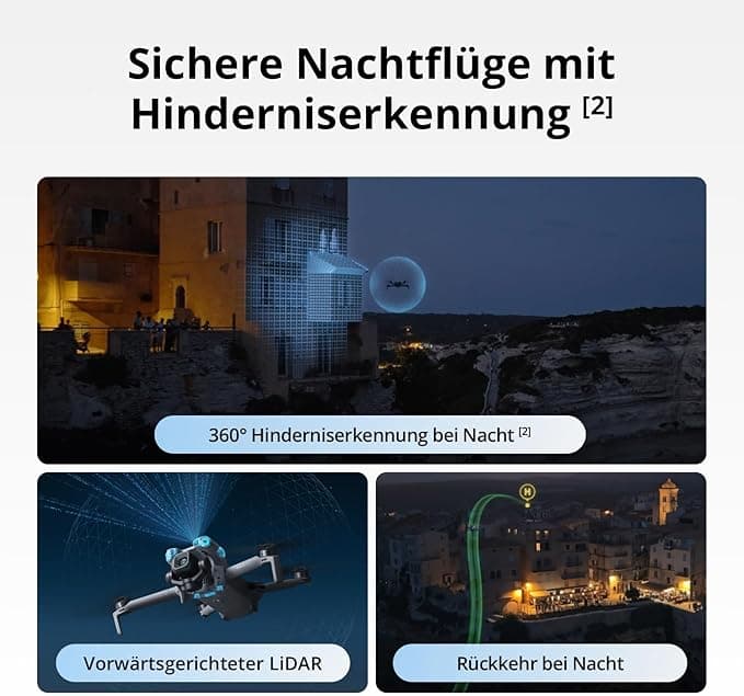 Der äußerst genaue Return-to-Home-Modus (RTH-Modus) funktioniert wie gewohnt zuverlässig und ist dank des LIDAR-Systems nun auch bei Nacht einsetzbar.