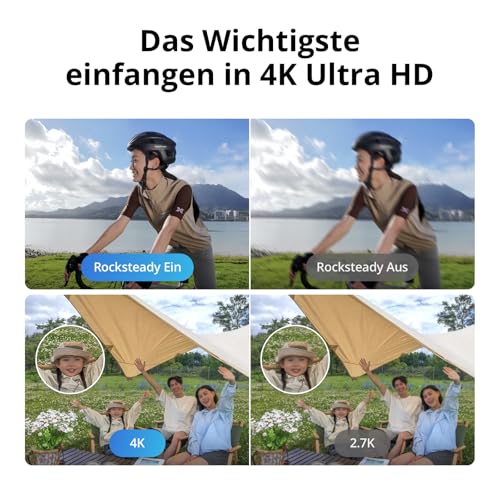 In puncto Videoauflösungen stehen entweder 4K oder Full HD zur Auswahl. Mit eingeschalteter Stabilisierung beträgt die 4K-Auflösung 3.840 x 2.160p. Ohne elektronische Bildstabilisierung sogar 3.840 x 2.880. Die Framerate bei 4K-Aufnahmen beträgt 30 fps. In Full HD stehen sogar 50 oder 60 fps zur Auswahl.