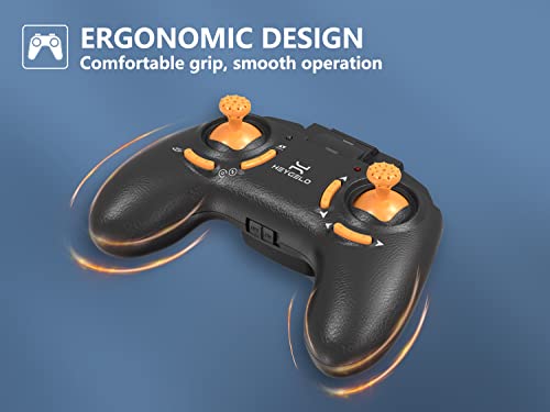 Die Heygelo S90 Sirius startet und landet anfängerfreundlich auf Knopfdruck oder auf Wunsch auch manuell. Die aktuelle Flughöhe hält sie eigenständig (Altitude Hold), ohne dass Sie dafür den Schubregler betätigen müssen.