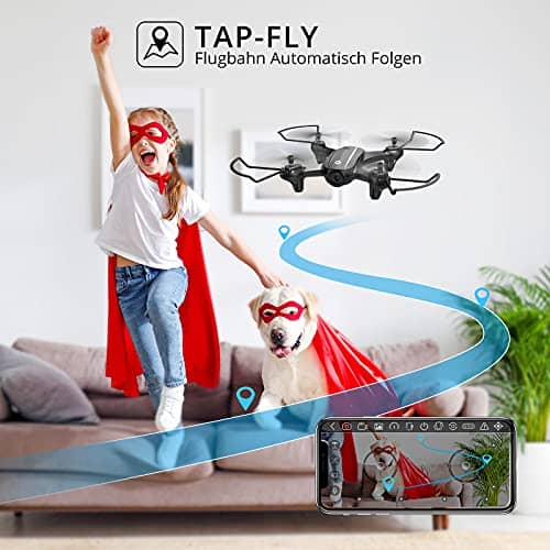 Die Kamera macht für diese Preisklasse sehr ordentliche Aufnahmen und die Livebildübertragung lässt Sie Videos in Echtzeit auf dem Smartphone betrachten. Die zwei Akkus sorgen für insgesamt bis zu ca. 22 Minuten Flugzeit und die unterschiedlichen Flugmodi wie „Highspeed-Rotation“ oder „3D-Flips garantieren großen Spaß.