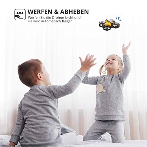 Die farblich in Gelb-Schwarz gehaltene Mini-Drohne ist gut verarbeitet und besitzt festverbaute Rotorschützer. Das robuste Design lässt die Drohne die meisten Kollisionen und Abstürze unbeschadet überstehen und sorgt für anhaltenden Flugspaß.