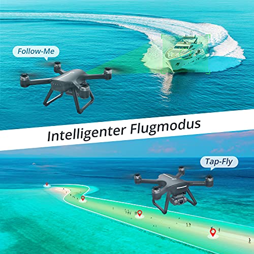 Da der Quadrocopter mit gleich zwei Akkus ausgeliefert wird, können Sie bis zu 46 Minuten Flugzeit genießen, bevor die LiPos wieder aufgeladen werden müssen. Dank GPS und GLONASS stehen jederzeit ausreichend viele Satelliten zur Positionsbestimmung zur Verfügung und die Drohne hält jederzeit präzise ihre Position am Himmel. Auch autonome Flugmodi wie Follow Me, Tap Fly und POI stehen zur Auswahl.