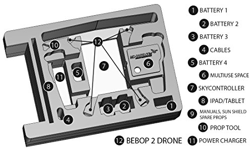 Dieser robuste, wasser- und staubdichte Hartschalen-Transportkoffer wurde speziell für die Parrot Bebop 2 (nicht die „alte“ Bebop (1) oder andere Copter) mit Skycontroller gefertigt (selbstverständlich kann dieser Koffer auch für die Parrot Bebop 2 ohne Skycontroller genutzt werden) und bietet Platz für den Quadrocopter im flugfertigen Zustand sowie zahlreiches Zubehör.