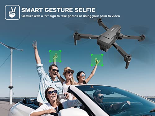 Für die Aufnahme von Selfies oder kurzen Videos von einem selbst kann eine einfache Gestensteuerung genutzt werden. Dafür muss die Drohne in geringem Abstand vor Ihnen schweben und die Kamera auf Sie gerichtet sein. Wenn Sie Ihre Finger zum „Victory-Zeichen“ formen, wird ein Foto aufgenommen. Um Videos zu Starten oder zu stoppen, strecken Sie der NEHEME NH760 einfach Ihre ausgestreckte Handfläche entgegen.