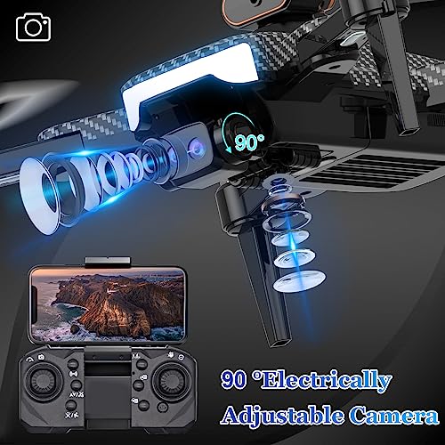 Mit ihrem Chassis in Karbonoptik und dem auf der Oberseite sitzenden Modul zur Hinderniserkennung macht die OBEST P9 einen ziemlich futuristischen Eindruck. Dazu trägt auch die breite und helle Front-LED bei, die Ihnen zusammen mit den Positionslichtern an den vier Armen dabei hilft, Vorder- und Rückseite der Drohne in der Luft einfach auseinanderzuhalten.