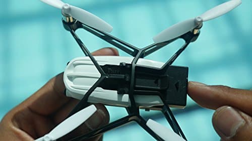 Gesteuert wird der Mini-Quadrocopter übrigens per Smartphone, mit Hilfe der kostenlosen App FreeFlight 3, die sowohl für Android als auch für iOS zur Verfügung steht. Die Reichweite der Hybrid-Drohne liegt bei ca. 20 Metern – allzu weit entfernt sollte man die Drohne daher nicht fliegen bzw. schwimmen lassen. Die Signalübertragung funktioniert dabei über Bluetooth.