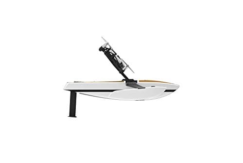 Die einzigartige Konstruktion der Parrot Hydrofoil orientiert sich an Tragflügelbooten mit Stützflächen unter dem Bug. Durch den Vortrieb der Rotorblätter erreicht die Hybrid-Drohne auf dem Wasser Geschwindigkeiten von bis zu 10 km/h und hebt sich dabei bis zu 6 cm aus dem Wasser heraus.