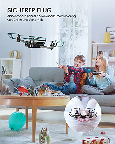 Geeignet ist der Copter daher auch als Drohne für Kinder ab ca. 10 Jahren, die bis zum 14. Lebensjahr jedoch nur unter Aufsicht eines Erwachsenen mit der Drohne fliegen sollten.