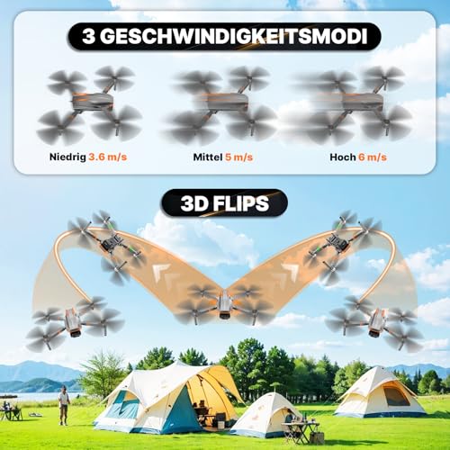 Für den nötigen Vortrieb sorgen vier leistungsstarke und relativ leise Brushless-Motoren. Zur Auswahl stehen insgesamt drei unterschiedliche Geschwindigkeiten, die am Controller ausgewählt werden können. In der schnellsten Stufe erreicht die Drohne bis zu 21,6 km/h und ist damit relativ flott unterwegs.