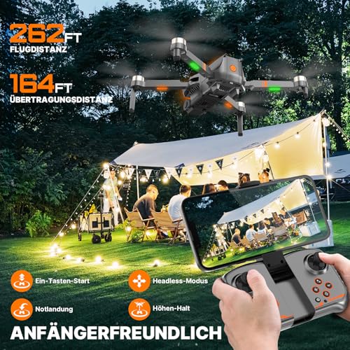 Ausgeliefert wird die TOPRCBOXS Q12 mit gleich zwei Akkus, so dass insgesamt bis zu 30 Minuten Flugzeit möglich sind. Gesteuert werden kann die kleine Drohne entweder per Controller oder auch nur per Smartphone. Die Steuerreichweite beträgt bis zu 80 Meter, das FPV-Livebild kann bis in Entfernungen von ca. 50 Metern übertragen werden.